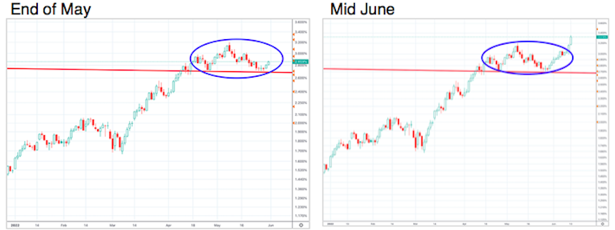 When we last checked in on rates at the end of May, we shared the below chart of the 10-year U.S. Treasury yield. Like other rates across the curve, the 10-year yield had been consolidating above the big downtrend resistance (red line) that had kept a lid on interest rates for the past 40 years.