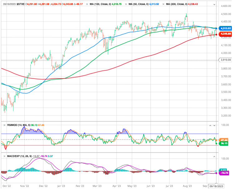 Waiting for the next Powell move, the market held support at the 50-DMA on Friday, with the overall price conditions remaining neutral. Like a groundhog that sees its shadow, the MACD signal is close to registering a “sell signal.” If the signal triggers, it could signal a couple of additional weeks of sloppy trading action heading into October.