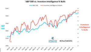 The % of Bulls in the Investors Intelligence survey has moved up to 62.5%, the highest since April 2021.