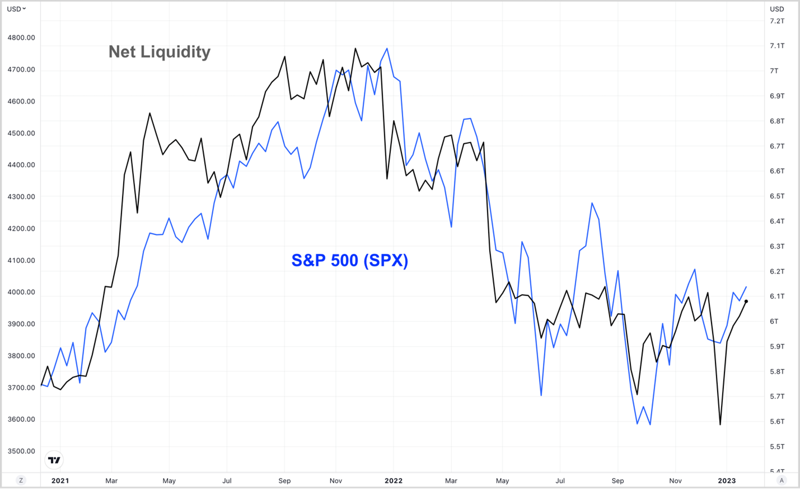 Given these dynamics, subtracting the TGA and RRP balances from the Fed’s total balance sheet should give us a more accurate measure of actual liquidity conditions in the U.S.