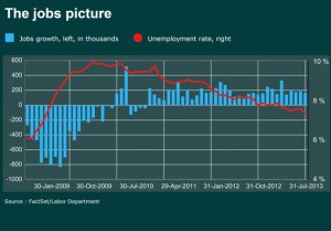 A lively debate has broken out among economists about whether the Federal Reserve will decide to slow down the pace of its asset purchase plan in September or December. Fed Chairman has suggested only that the slowdown of purchases is likely “later this year.” The Federal Reserve releases a statement at the conclusion of each of its policy-setting meetings, outlining the central bank’s economic outlook and the actions it plans to take. Much of the statement remains the same from meeting to meeting. Fed watchers closely parse changes between statements to see how the Fed’s views are evolving.